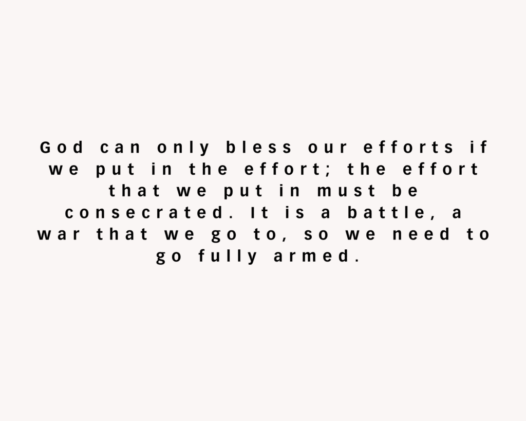 God can only bless our efforts if we put in the effort; the effort that we put in must be consecrated. It is a battle, a war that we go to, so we need to go fully armed.